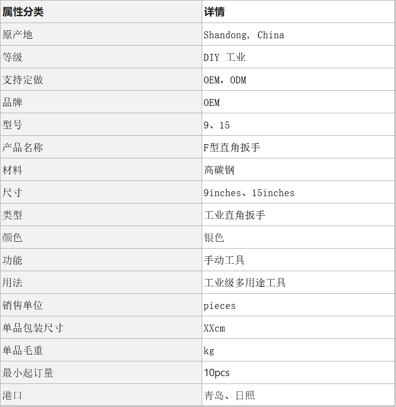 直角扳手F型扳手鹰嘴大开口扳手水管扳手